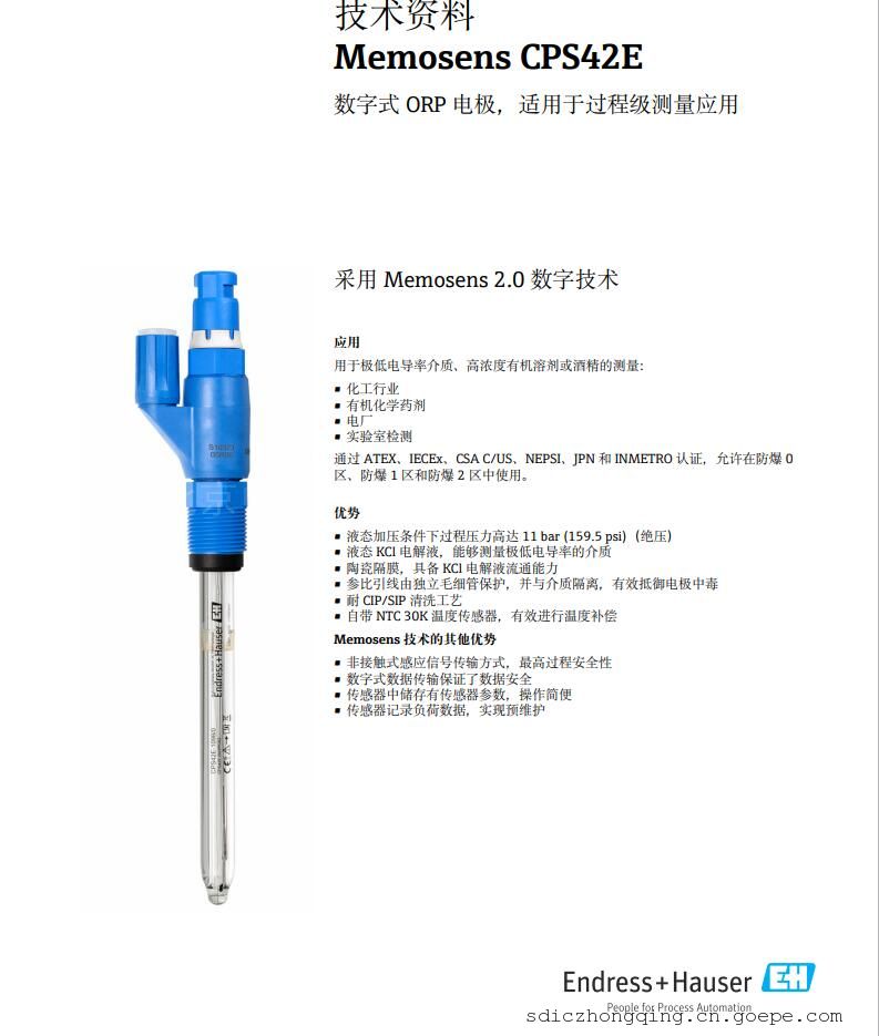 - CPS42E低电导率介质ORP测量电极德国E+H